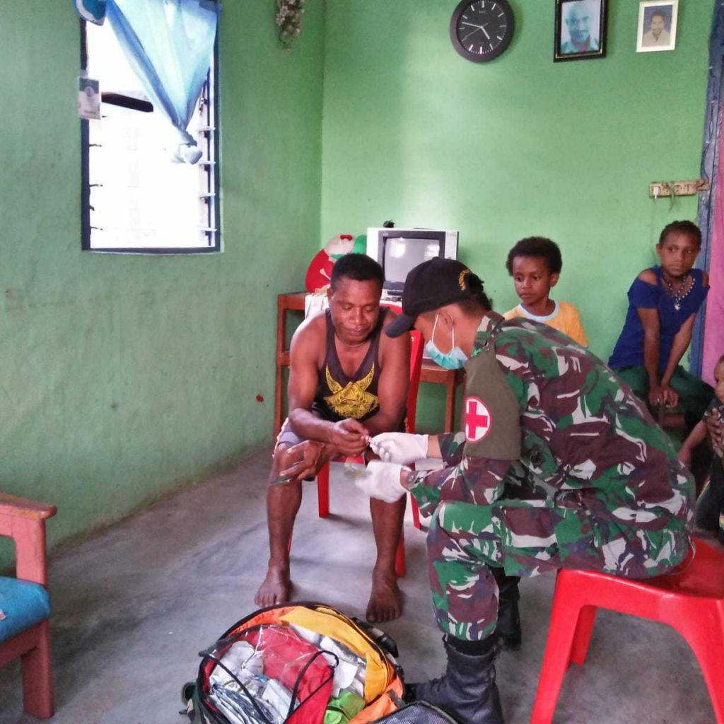 Pendiv2 – Jelang Purna Tugas, Satgas Pamtas RI-PNG Yonif Raider 509 Kostrad Pos Kotis gelar kegiatan Pelayanan Kesehatan door to door di Kp. Warlef Distrik Senggi, Kab. Keerom, Papua. Senin (22/7).