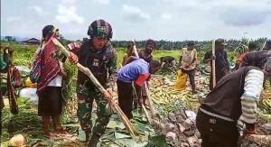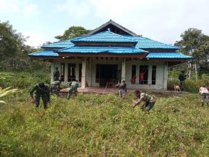 Satgas Pamtas RI-PNG Yonif Raider 100/PS, Pos Yabanda dipimpin oleh Serda Tri Fikra Wibowo dan 7 anggota melaksanakan karya bakhti...
