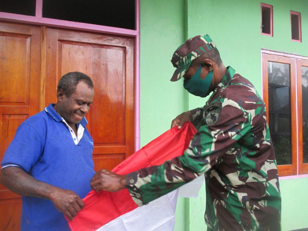 Pada hari Rabu 5/8/2020 pukul 09.30 WIT, Danramil 1701-14/Kemtuk Gresi Kapten Arm Enos Lodh Furima bersama Uspidis Kemtuk Gresi melaksanakan kegiatan pembagian Bendera Merah Putih kepada tiap-tiap kepala kampung Distrik Kemtuk Gresi, untuk diserahkan kepada warga yang belum mengibarkan Bendera.