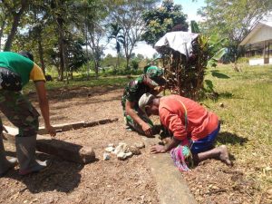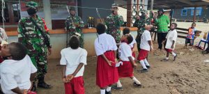Satgas Pamtas RI-PNG Yonif Mekanis Raider 413 Kostrad bersama dengan masyarakat Kampung Yetti Kecamatan Arso Timur Kabupaten Keerom membangun lapangan...