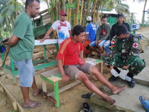 Satgas Pamtas RI-PNG Yonif MR 413 Kostrad membantu salah satu warga Kota Jayapura atas nama Rinto Yalmaf (35) yang melintas...
