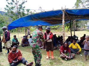 TOLIKARA~ Mengetahui ada warga binaanya meninggal dunia Babinsa Koramil 03 Bokondini Kodim 1702 Jayawijaya Sertu Sarmin Fokatea langsung bergegas melayat...