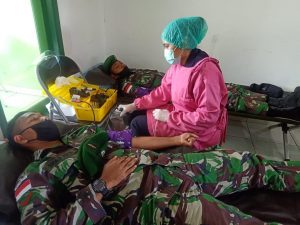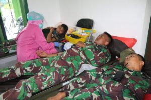 Ratusan anggota Yonif Raider 509 Kostrad yang telah usai melaksanakan tugas Pengamanan Perbatasan RI-PNG, menggelar aksi bakti sosial donor darah...