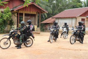 Dalam mencegah penyebaran Covid-19 dan menciptakan rasa aman di tengah masyarakat, Satgas Pamrahwan Yonif 754/ENK/20/3 Kostrad bersama Kompi 2 Yon...