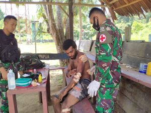 Satgas Pamtas RI-PNG Yonif MR 413 Kostrad membantu pengobatan terhadap salah satu warga Kampung Skopro Distrik Arso Timur Kabupaten Keerom...
