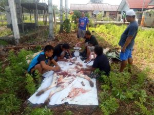 Pos Kotis Satgas Pamtas RI-PNG Yonif MR 413 Kostrad yang berlokasi di Kampung Skouw membantu pelaksanaan pemotongan Hewan Qurban di...