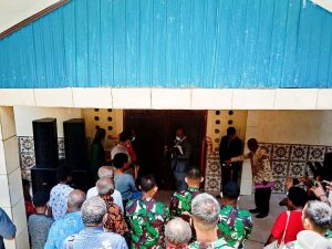 Keerom - Personel Satgas Yonif Raider 100/PS Pos Workwana bersama dengan Wakil Bupati Keerom Bapak Piter Gusbager meresmikan Gereja Pentakosta...