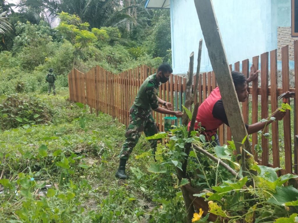 Keerom – Satgas Pamtas RI-PNG Yonif Raider 100/PS Pos Yabanda dipimpin oleh Serda Tri Fikra Wibowo dengan 8 orang anggotanya, melaksanakan karya bhakti di Puskesmas Yaffi, Desa Yabanda, Kecamatan Yaffi, Kabupaten Keerom, Papua. (26/09/20)