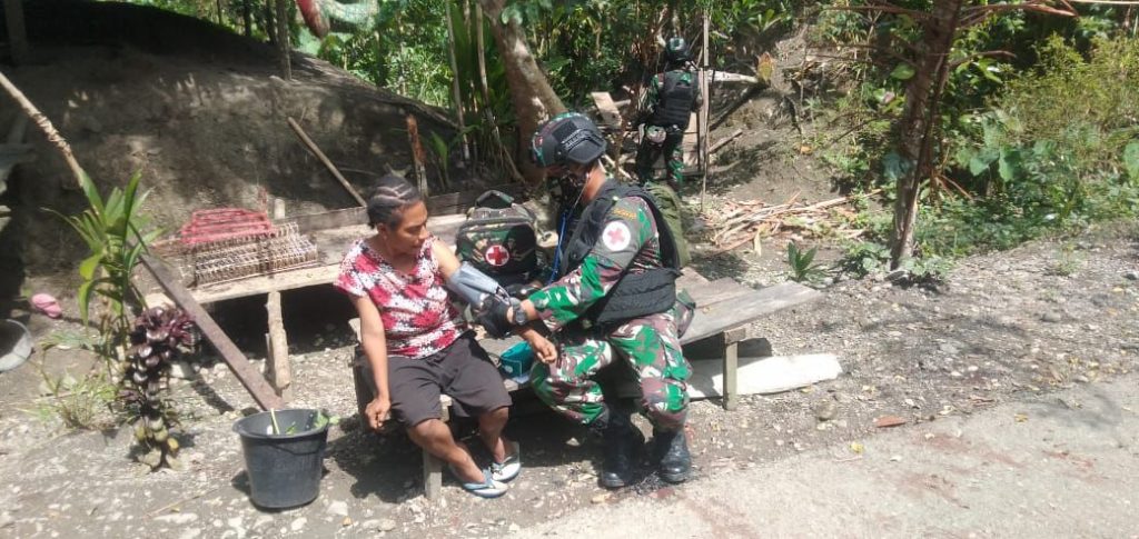 Keerom – Pada kegiatan yang sehari harinya bersama masyarakat kali ini Satgas Yonif Raider 100/PS Pos Kalipao melaksanakan pelayanan kesehatan di desa binaan Kampung Yuwainda, Kabupaten Keerom, Provinsi Papua. Selasa, (22/09/2020).