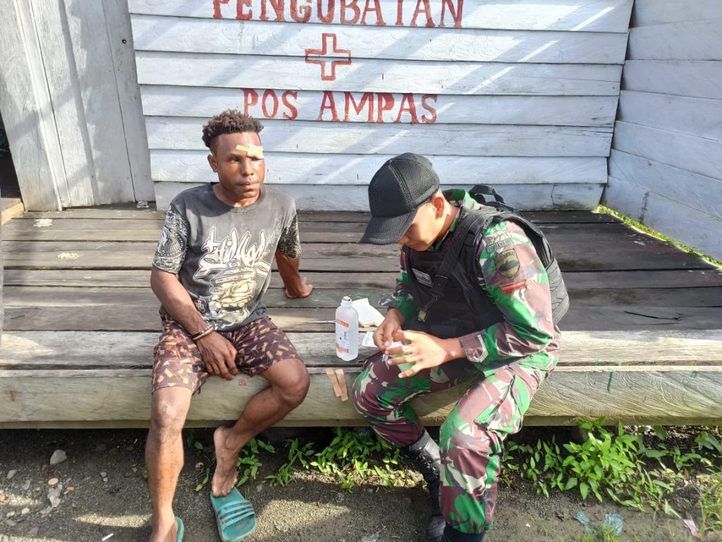 Dua orang Tenaga kesehatan Pos ampas, Prada syahputra kurniawan panggabean dan pratu rolis dengan sigap langsung memeriksa kondisi pasien tersebut, dan diberi obat penyembuh luka serta pemasangan perban untuk EDI dan obat sakit kepala untuk sodara YANCE. Setelah diberi obat, merakapun diizinkan pulang.