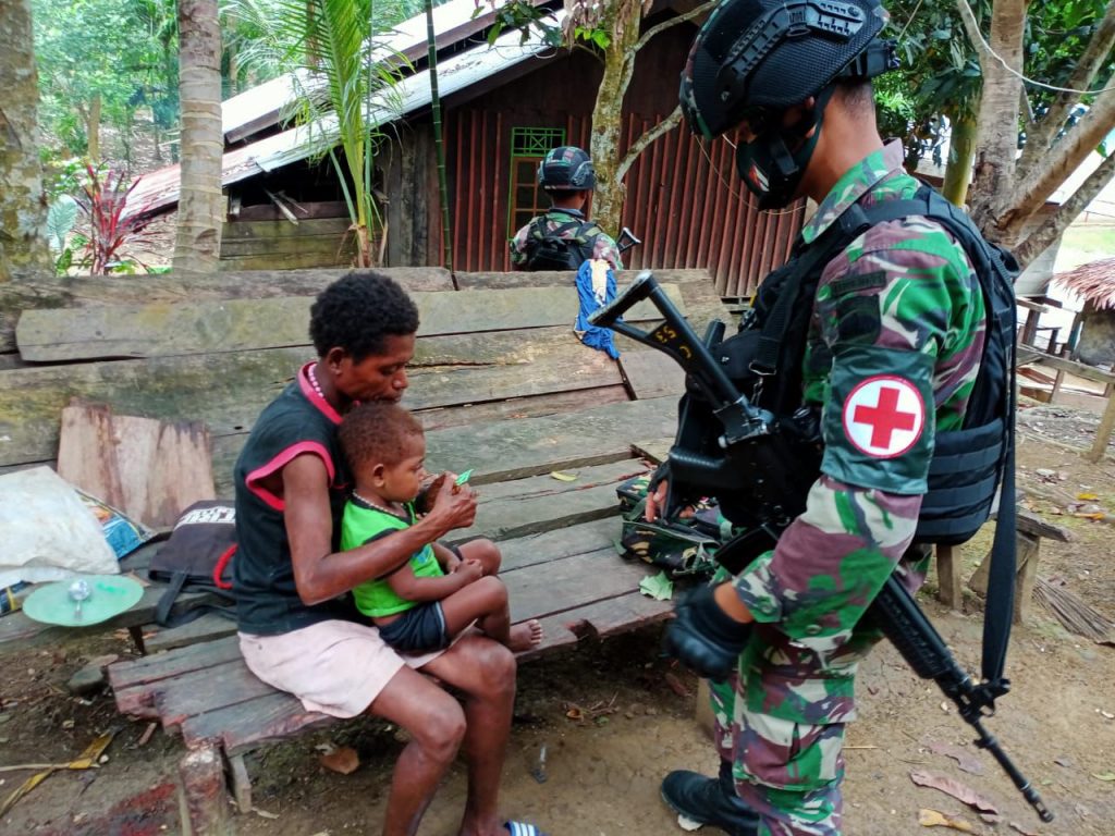 Salah satu warga Kampung Yuwainda mama Feronica Sebo (32) warga meminta pertolongan kepada anggota Pos Karang untuk menangani anak nya yang sedang sakit demam belakangan ini. Pengobatan rutin ini yang di pimpin Wadanpos Karang Serda Boy Halomoan Purba bersama dwngan Tamtama Kesehatan (Takes) Prada Raju Pranata Gultom bergegas mengobatin anak dari mama Feronica Sebo.