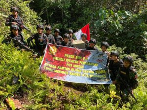 Satgas Pamtas RI-PNG Yonif Mekanis Raider 413 Kostrad Pos Mosso pimpinan Letda Inf Hanura melaksanakan patroli wilayah perbatasan di Patok...
