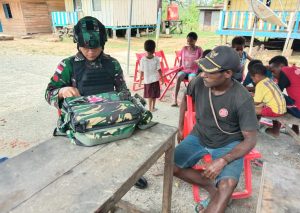 Keerom–Satuan Tugas (Satgas) RI-PNG Yonif RAIDER 100/PS Memberikan pelayanan kesehatan kepada warga Kampung Yabanda kab.Keerom Kec. yaffi prov. Papua (1/09/2020)...