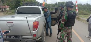 Satgas Pamtas RI-PNG Yonif Raider 100/PS Pos Kalipay melaksanakan kegiatan sweeping di jalan lintas trans papua tepat didepan Pos Kalipay,...
