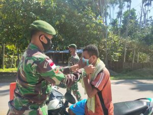Satgas Pamtas RI-PNG Yonif Mekanis Raider 413 Kostrad Pos Nafri menggelar aksi 'Razia' masker bertempat di Kampung Nafri Distrik Abepura...