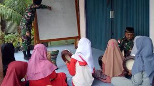 Satgas Pamtas RI-PNG Yonif Mekanis Raider 413 Kostrad mengajarkan seni Hadrah kepada masyarakat Kampung Arso 6, Distrik Arso Timur Kabupaten...