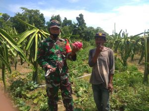 Keerom - Sabtu (26/9), Babinsa Koramil 23/Skanto kopda Miswanto melaksanakan kegiatan Binter dgn salah satu petani buah naga di Kampung...