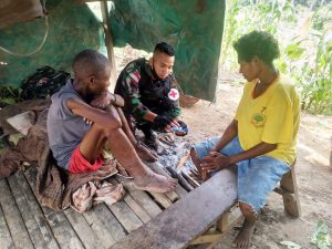 SATGAS PAMTAS RI-PNG YONIF RAIDER 100/PS POS WARIS BERIKAN PELAYANAN KESEHATAN KEPADA IBU MARIA MEHO