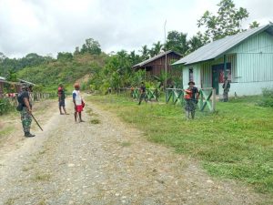 Keerom - Komandan Pos (Danpos) Kalilapar Letda Inf Irwan Silalahi beserta 7 anggota melaksanakan kegiatan karya bakti guna meningkatkan kebersihan...
