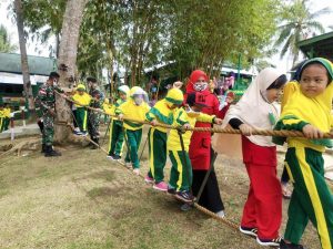 Satgas Pamtas RI-PNG Yonif Mekanis Raider 413 Kostrad menggelar kegiatan Wisata Juang kepada siswa pendidikan anak usia dini (PAUD) AIYIYAH...