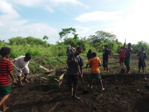 Keerom - Senin (18/9), Babinsa Koramil 1701-23/ skanto, kopda Yuli barrang bersama jemaat gereja andiyogya melaksanakn Kerja Bhakti meratakan timbunan...