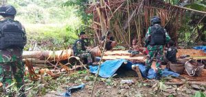 Keerom-Sebagai upaya untuk membantu meningkatkan hasil panen sagu masyarakat perbatasan, anggota Satgas Pamtas RI-PNG Yonif Raider 100/PS Pos Ampas, Serda...