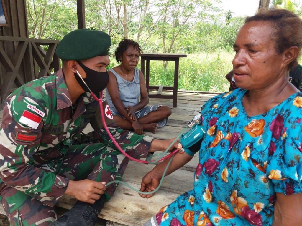 Satgas Pamtas RI-PNG Yonif Mekanis Raider 413 Kostrad Pos Muara Tami melaksanakan kegiatan pengecekan kesehatan secara rutin kepada warga Skouw Sae Distrik Muara Tami Kota Jayapura.