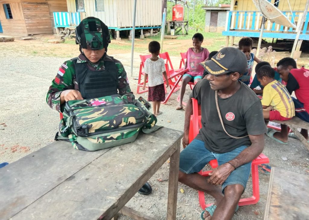 Keerom–Satuan Tugas (Satgas) RI-PNG Yonif RAIDER 100/PS Memberikan pelayanan kesehatan kepada warga Kampung Yabanda kab.Keerom Kec. yaffi prov. Papua (1/09/2020)