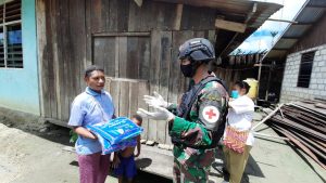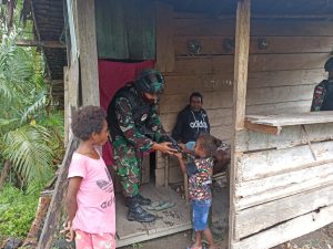 Keerom- Bekerja sama dengan petugas puskesmas waris dalam upaya pencegahan penyakit malaria, Satgas Pamtas RI-PNG Yonif Raider 100/PS membagikan kelambu...