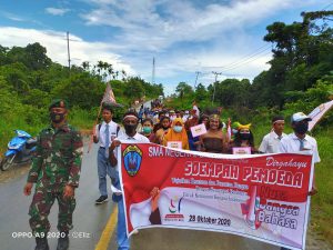 Keerom – Dalam rangka memperingati hari Sumpah Pemuda ke-92 tahun, Satgas Pamtas Yonif 312/KH, Polri, Elemen Pemerintahan, Organisasi Kepemudaan Serta...