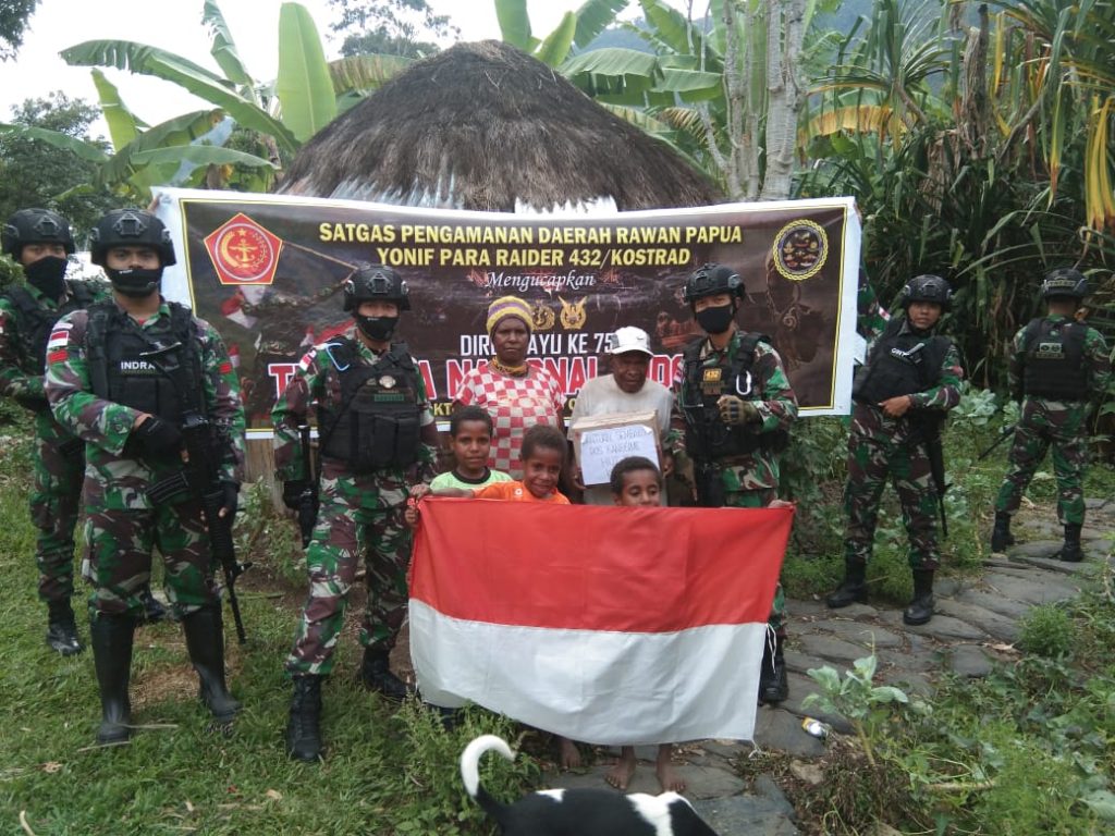 Kegiatan Bakti Sosial Satgas Pamrahwan Yonif Para Raider 432/WSJ/3/3 Kostrad dimana kegiatan membagikan sembako kepada masyarakat yang kurang mampu Khususnya yang berada di Kampung Kanggime , papua. Senin (05/10/2020).