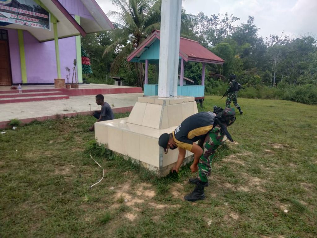 Keerom – Aksi Personel Satgas Pamtas RI-PNG Yonif Raider 100/PS Pos Yabanda sudah di akui jempol oleh masyarakat perbatasan RI-PNG melalui aksinya bersama sama dengan masyarakat membersihkan lingkungan Gereja Injil di Kampung Yabanda, Diatrik Yaffi, Kabupaten Keerom, Provinsi Papua. Rabu, (30/09/20).