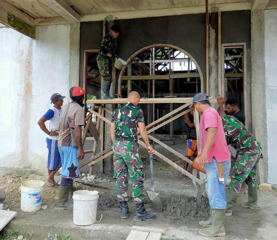 Anggota Pos Bonggo Mengajak masyarakat untuk bahu-membahu membangun gereja yang sudah semenjak 2016 dimulai pembangunannya akan tetapi belum selesai sampai dengan sekarang. Dengan adanya kebersamaan antara anggota satgas dan masyrakan tempat sarana ibadah segera dapat terselesaikan pembangunannya.