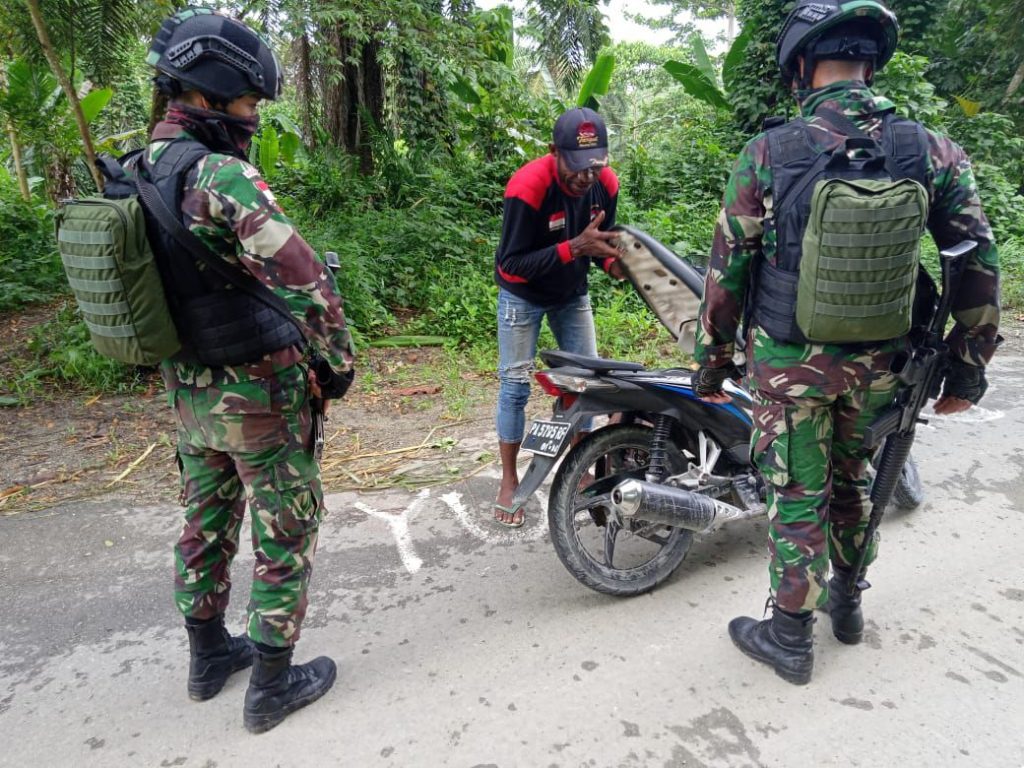 Keerom – Untuk menjaga keamanan dan ketertiban lalu lintas diperbatasan, Satgas Yonif Raider 100/PS Pos Sawiyatami yang dipimpin oleh Letda Inf Juniur Simanjorang selaku Danpos Sawiyatami beserta 11 orang anggotanya melaksanakan pemeriksaan kendaraan yang melintas di jalan lintas Kp. Sawiyatami menuju Kp. Wembi.