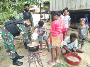 Keerom – Pos Ungalom Satgas Pamtas Yonif 312/Kala Hitam memperkenalkan salah satu kuliner khas bandung “Peyeum Bandung” sekaligus mengajarkan warga...