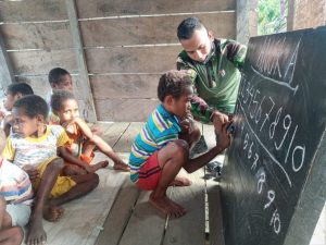 Keerom-Upaya memberikan perhatian lebih kepada anak anak perbatasan RI-PNG terus dilakukan dengan sepenuh hati, personel Pos Kalilapar Satgas Pamtas RI-PNG...