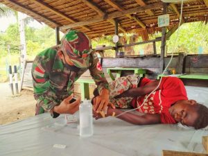 Keerom - Pelaksanaan pelayanan kesehatan yang dilaksanakan oleh Pos Yabanda Satgas Pamtas RI-PNG Yonif Raider 100/PS yang dipimpin oleh Serda...