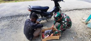 Keerom - Bentuk kepedulian kepada masyarakat di daerah perbatasan RI-PNG dimulai dari hal hal kecil, salah satunya aksi Satgas Pamtas...