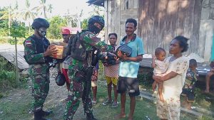 Keerom - Inilah bentuk kepedulian Satgas Yonif Raider 100/PS yang terus bergerak dalam rangka meringankan beban masyarakat di tengah pandemi...