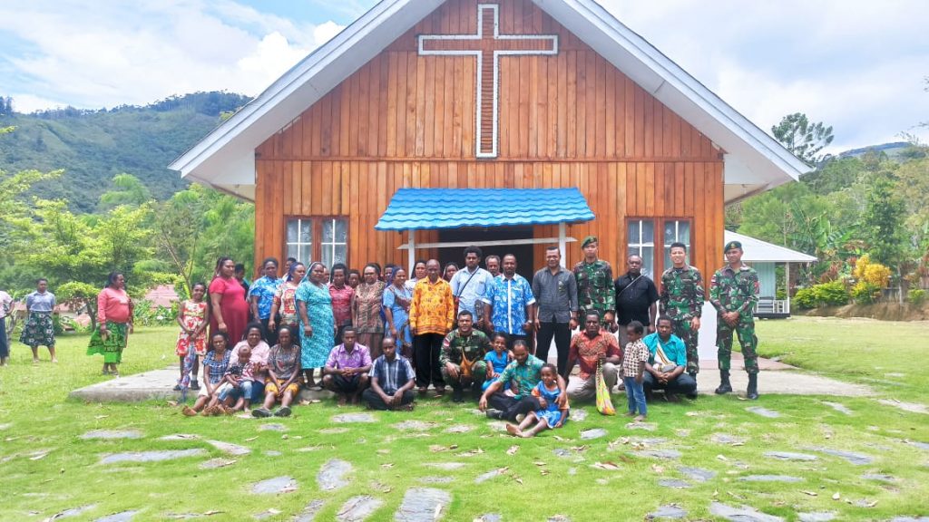 Mempererat rasa persaudaraan antara masyarakat kampung dengan anggota Satuan Tugas Pamrahwan Yonif 432/WSJ/3/3 Kostrad selengarakan ibadah dan membagikan alat ibadah kepada masyarakat di Gereja Bezzer, distrik Kelila Kabupaten Membramo Tengah, Papua, minggu (04/10/2020)