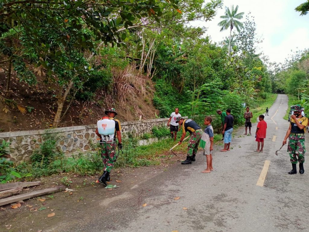 “Karya bahkti yang di lakukan oleh anggota dari Pos Karang ini merupakan suatu kegiatan pendekatan kepada masyarakat yang ada di Kampung Yuwainda. Masyarakat kampung yuwainda juga menyambut kedatangan dari anggota Pos Karang dengan senang hati”, jelas Danpos.