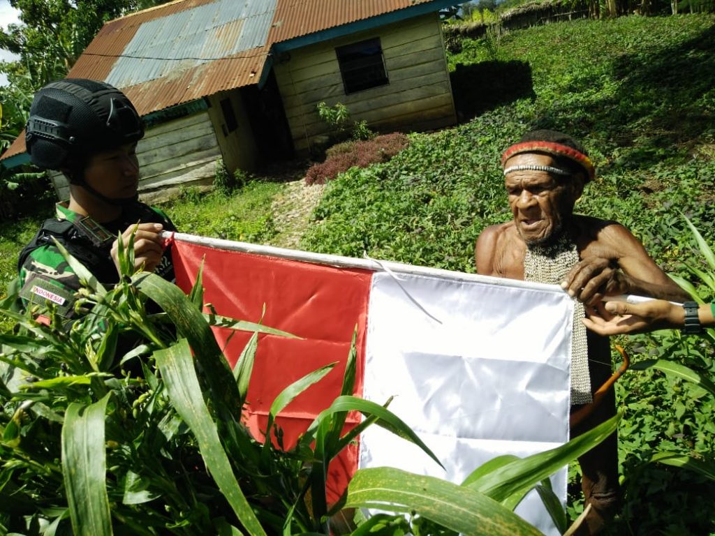 Satgas Yonif Para Raider 432/3/3 Kostrad menghadiri undangan yang di sampaikan oleh kepala suku di kampung Yiwika untuk mendengarkan ceritanya dalam memperjuangkan tanah Papua agar tetap merah putih, kampung Yiwika, Distrik Kurulu, Wamena, Provinsi Papua. Jumat (17/10/2020)
