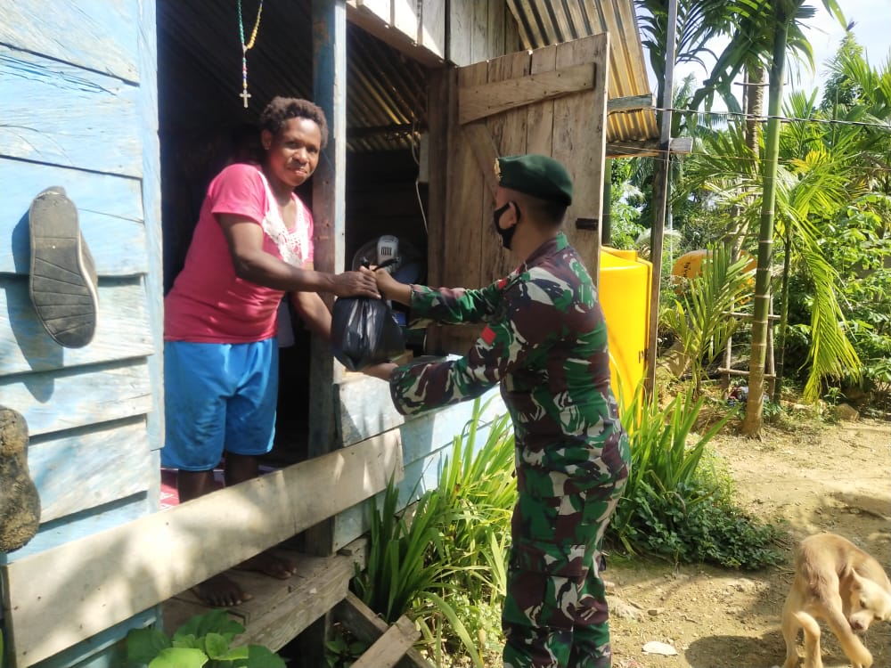 Mama Rachel (62), Salah satu warga di Kampung tersebut tidak dapat menyembunyikan kebahagiaannya setelah menerima bahan pokok makanan dari Prajurit Pos Skamto. “Terimakasih anak atas bantuannya mama senang sekali, semoga Kebaikan anak semua dibalas Tuhan Yang Maha Kuasa.” Terang Mama Rachel kepada Prajurit Skamto tersebut.