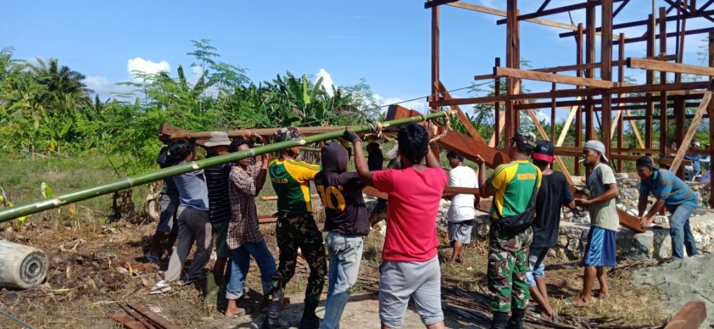 Satgas Pamtas RI-PNG Yonif Mekanis Raider 413 Kostrad Pos Bendungan Tami bersama masyarakat membantu membangun rumah warga di Kampung Selayar Distrik Muara Tami Kota Jayapura.