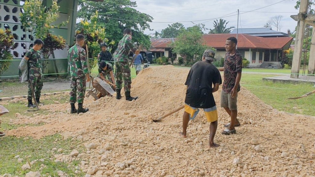 Lebih lanjut dijelaskan, pembenahan halaman gereja tersebut dilaksanakan bersama sama dengan masyarakat, mulai dari menaburkan pasir kerikil disepanjang halaman yang sudah ditentukan untuk memperindah halaman tersebut, sehingga halaman gereja terhindar dari rerumputan panjang, “Melalui kegiatan tersebut, selain dapat menumbuhkan rasa saling membantu dan gotong royong juga, menumbuhkan semangat masyarakat untuk lebih Cinta Tanah Air,” pungkas Dansatgas.