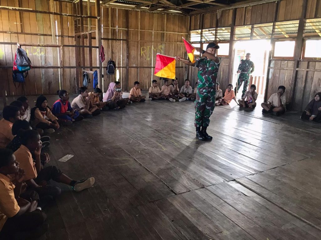 Sementara itu Prada Syahru Purnama Ramadhan, Prajurit yang mengajarkan materi pramuka kepada siswa-siswi SMPN 1 Senggi ini mengungkapkan bahwa materi yang diberikan kali ini mengenai Semaphore, yaitu suatu cara untuk mengirim dan menerima berita dengan menggunakan bendera, dayung, batang, tangan kosong atau dengan memakai sarung tangan. Informasi yang disampaikan dibaca melalui posisi bendera atau tangan.