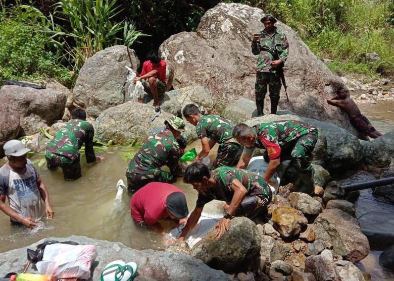 Akibat guyuran hujan yang deras menyebabkan patahnya pipa air bersih yang merupakan sumber mata air bagi Kampung Dabra Kompleks. Namun hal itu tak menyurutkan semangat serta gotong royong antara personel Koramil 1712-05/Memberamo Hulu dengan masyarakat.