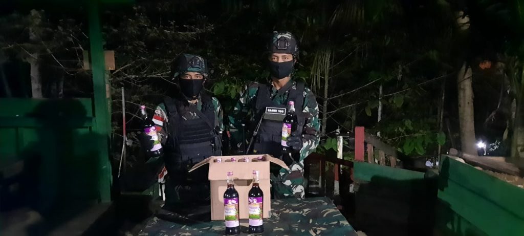 Keerom – Satuan Tugas Pengamanan Perbatasan (Satgas Pamtas) Yonif Raider 100/PS kembali berhasil mengamankan seorang warga pembawa minuman keras (miras)saat melakukan kegiatan sweeping di jalan lintas trans Papua Wamena tepatnya didepan Pos Wembi, tepatnya di Kampung Wembi, Distrik Mannem, Kabupaten Keerom, Provinsi Papua. Kamis,(26/11/2020).