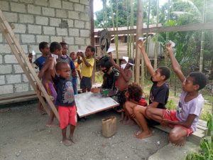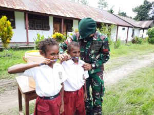 Satgas Pamtas RI-PNG Yonif Mekanis Raider 413 Kostrad Pos Yetti memberikan perbantuan tenaga kependidikan kepada Siswa SD Mahanaim Distrik Arso...