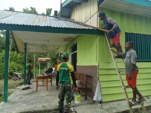 Sebagai bukti kedekatan dan kepedulian dengan masyarakat Perbatasan RI-PNG, Satgas Yonif Mekanis Raider 413 Kostrad membantu membangun Gereja Sola Gracia...
